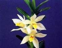 種名是「圓屋頂的」意思,因蕊柱半月形而得名。分佈在中美洲至南美洲的秘魯、巴西等廣大區域的附生蘭。莖朝上方或側面伸展,每2~3公分間隔生出一球莖。球莖為稍扁平的長卵形,長約5~8公分,頂生2~3枚葉。葉革質,長約15~20公分。花莖隨著新葉的展開而抽出,長約2~3公分,著生花朵。花大致平開,直徑約3公分,肉厚,乳白色,唇瓣帶有一抹黃色。花期冬季至夏季。