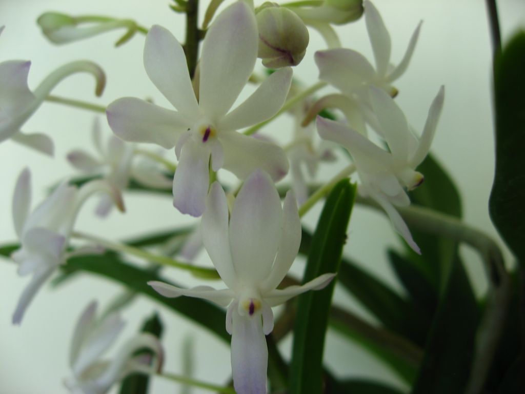 日本小風蘭又稱為富貴蘭。種名為「鐮刀形」之意。分佈於日本關東的南部以西、沖繩、朝鮮半島、中國等地,著生於樹幹或岩石上。草丈高約15公分的小型種。葉呈線形鐮刀狀並彎曲,左右2列互生;葉肉厚,長約10公分,斷面呈V字形。花莖從葉腋抽出,約1~3支,直立,高約3〜10公分,頂端有3~6朵白花,花直徑約2公分。背萼片和花瓣向上方彎折,側萼片下垂。距長約5公分,向前方彎曲。散發出芳香。小型種,易開花,因有耐寒性強的特點,常與百代蘭屬(Ascocentrum)屬和萬代蘭屬(vanda)交配。花期夏季。低溫性。