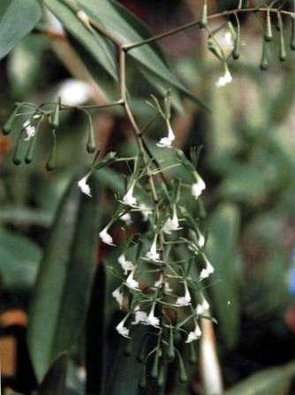 分佈於墨西哥至中美洲、南美洲等廣大地域的附生蘭或地生蘭。種個體有極大的變異,草丈約1公尺。莖密生,直立。葉薄革質,披針形,帶有紫色,長約10~20公分。花莖頂生,具分枝,呈現弓狀彎曲,密生多數的花而形成圓錐狀。花直徑約2公分。花色綠色~紅紫色;唇瓣白色,帶有紅紫色斑紋。花期初夏